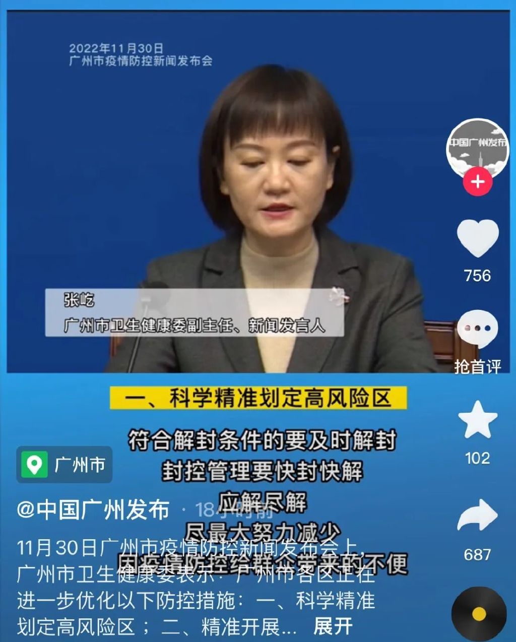 大家正不知道发生了什么事情的时候,广州政府突然发布一个重磅消息:临时管控区全部解封,同时出台多条优化防疫措施:长期居家老人,居家网课学生、居家办公者,没有外出需求可以不参加全员核酸筛查;同时,各区交通、餐饮逐步开放,恢复正常。