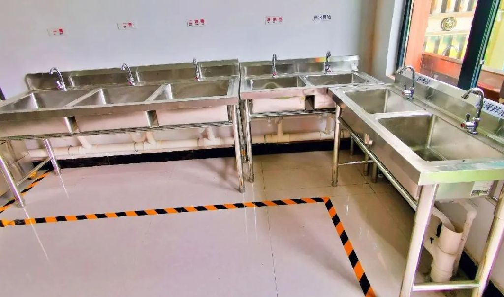 使用耐腐蚀的不锈钢或瓷砖材料的洗碗池、消毒池,并且两个池要分开,不能混合使用,池底的排水系统要通常,不能有堵塞,当日的污物垃圾要当日清理带走,不能滞留在池内。