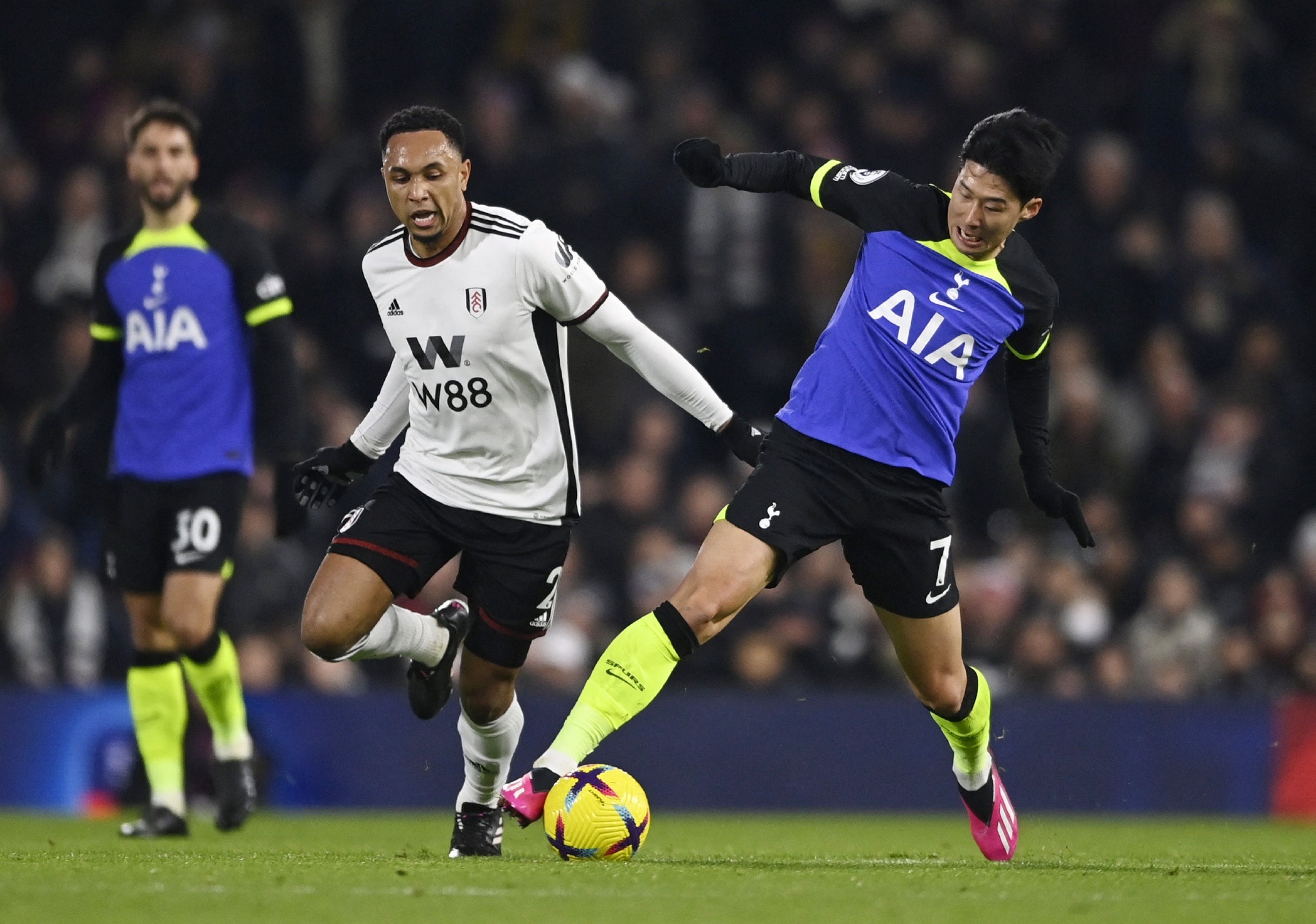 1月23日,热刺队球员孙兴民(右)与富勒姆队球员泰特拼抢。新华社/路透