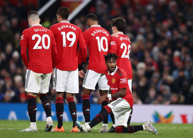 曼联队首发阵容: 德赫亚、达洛特、瓦拉内、利桑德罗-马丁内斯、卢克-肖、弗雷德、萨比策、拉什福德、B费、加纳乔、韦格霍斯特