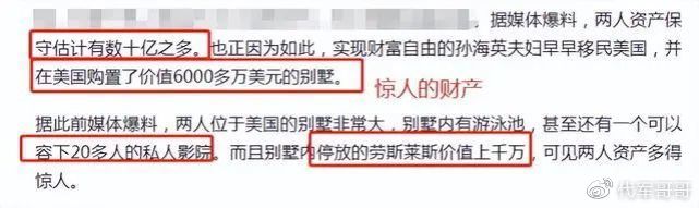 据爆料,去了美国后,他们不光资产保守估计有数十亿之多,甚至还花费6000多万美元,在美国买了一套别墅,别墅里还有一个超级大的影院、游泳池,不是一般的富裕。另外的话,他们家别墅里还停着好几辆价值上千万的豪车,从存款到这些固定资产,可不就是一笔惊人的财产!