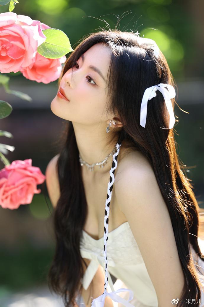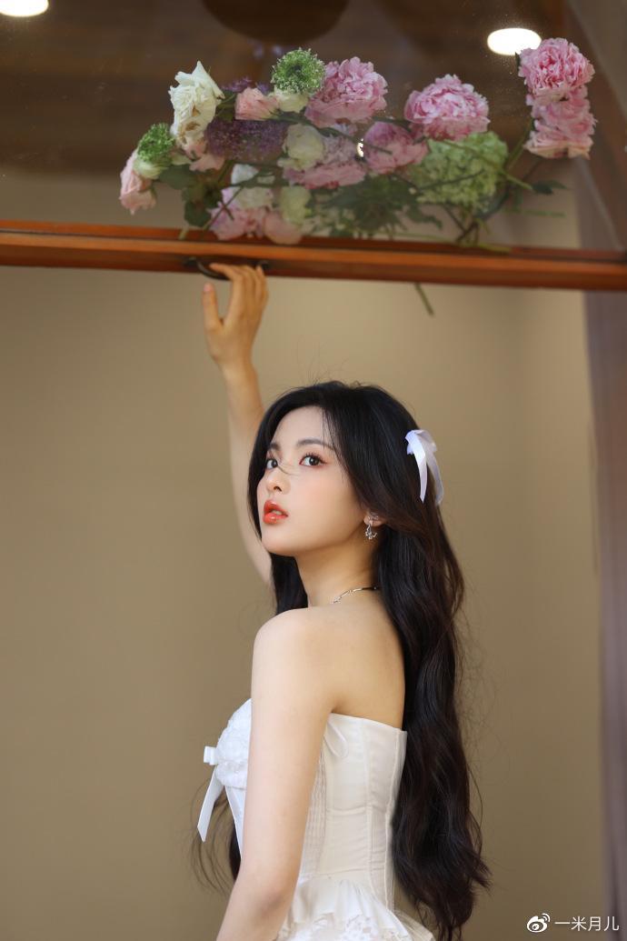 5月8日,杨超越微博晒出一组春日鲜花大片,图中杨超越穿白色抹胸连衣裙置身鲜花中,氛围感十足,作为一个艺人杨超越今年刚好25岁,可以说是人生最好的年纪了,杨超越梳着一袭长发,头发上还别着独特的头饰,显得温婉又可人。