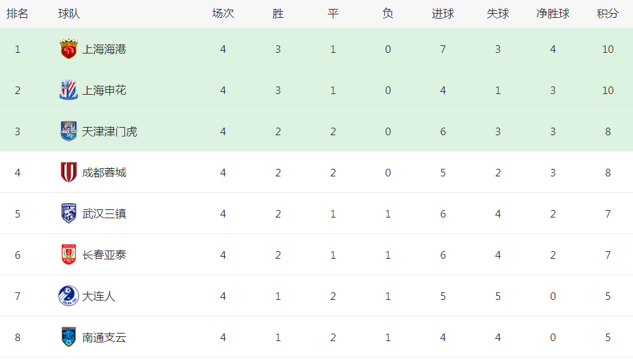 新赛季的开局,上海申花踢得非常高光,前面4轮中超战罢,他们3胜1平,未尝败绩,唯一的一场平局还是和强大的同城死敌上海海港较量。不过,申花虽然和榜首上海海港积分相同,同积10分,但因为净胜球少1个,而只能暂时屈居中超次席。