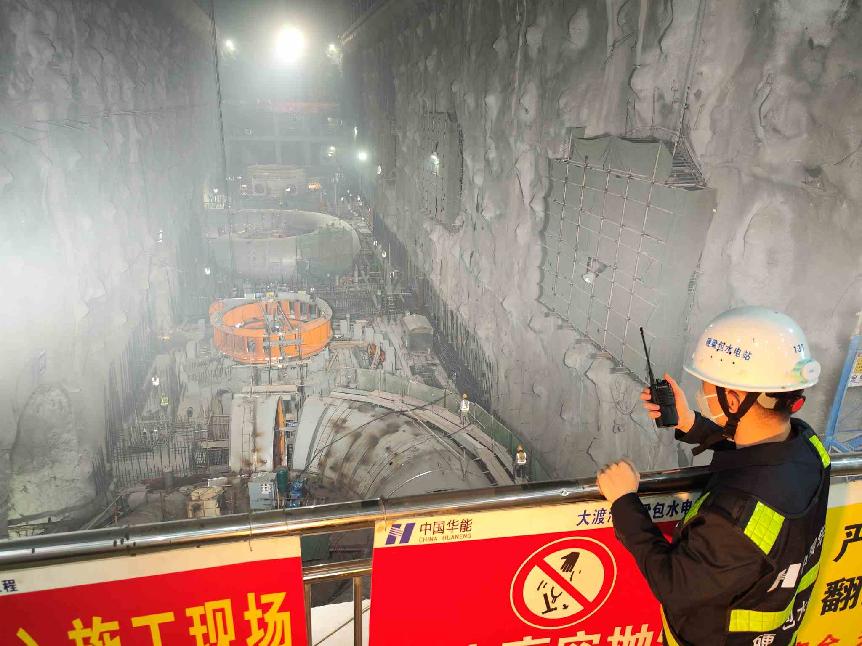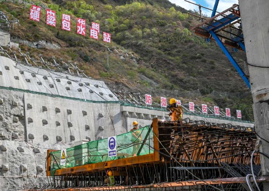 工人拼搏在华能硬梁包水电站。四川华能泸定水电有限公司供图
