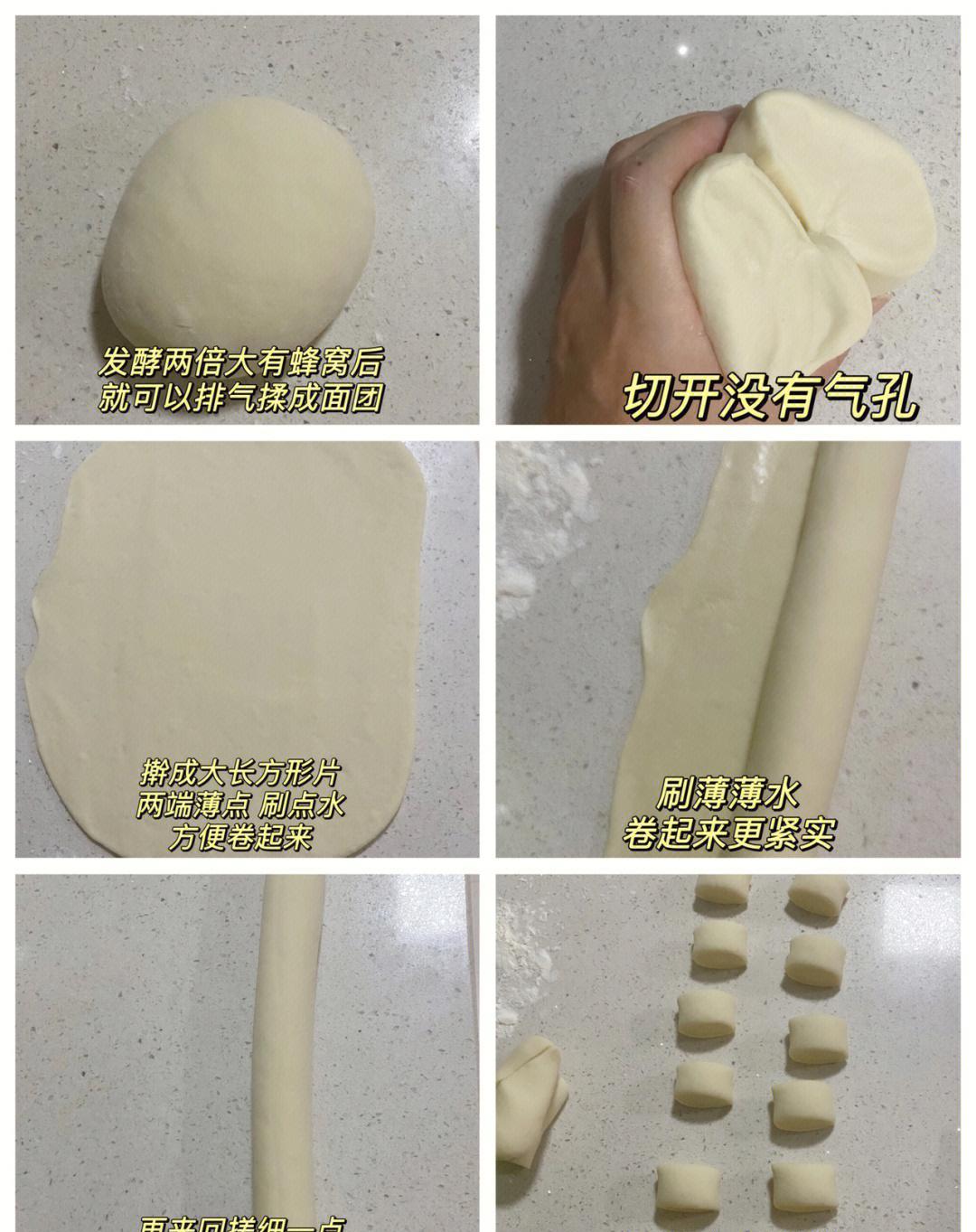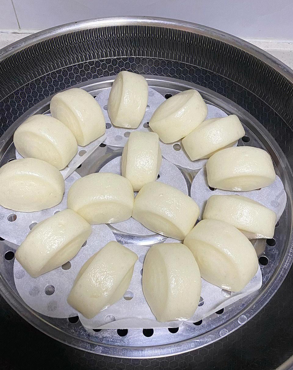 面团取出,揉成长条状,切成小段,揉成圆形,放入蒸锅内,加盖醒发10-15分钟。
