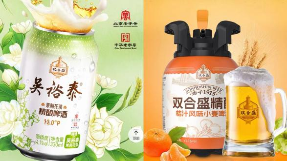 燕京啤酒则通过中高端子品牌狮王发力,树莓小麦带着新鲜浆果的微酸,茉莉白啤在泡沫中裹着 floral 香气,两款产品直接将精酿的颜值与口感双重升级。更值得关注的是老品牌中的“潮人”双合盛,不仅推出桔子味小麦果汁这样的清爽款,还玩起了跨界联名——与吴裕泰联手打造的茉莉花茶精酿,把老北京茶味融进啤酒,上市即成为社交平台爆款。数据印证了这波创新的成功:精酿群体中女性占比已升至55%,在果味、茶香等创新产品线中,女性比例更是突破60%。