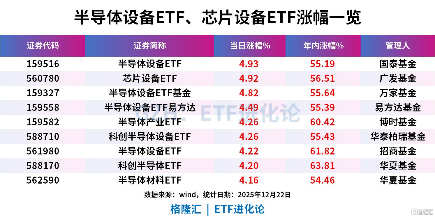 硬科技板块继续上攻!半导体设备ETF、芯片设备ETF、半导体设备ETF基金、半导体设备ETF易方达、半导体产业ETF、科创半导体设备ETF、半导体设备ETF、科创半导体ETF、半导体材料ETF涨超4%。