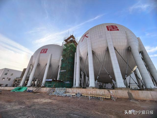 宁夏区域最大的单体储热罐,被喻为“只用空气做工的绿色大号充电宝”工程的地上心脏。