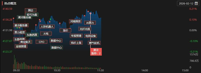 盘面上,AI需求旺盛推动CPO、铜缆、电容等算力硬件股集体走强,天孚通信(300394)、太辰光(300570)多股创出历史新高。算力租赁相关个股同步走强,优刻得盘中20cm涨停,此前公司上调产品服务价格。小金属板块延续活跃,翔鹭钨业(002842)、章源钨业(002378)收获涨停,机构看好关键矿产资源价格上涨趋势。整体看,AI硬件方向表现出色。另一方面,影视院线、短剧游戏板块继续调整,欢瑞世纪(000892)、横店影视(603103)、博纳影业(001330)跌停。零售、食品等消费股表现不佳,海欣食品(002702)、东百集团(600693)跌幅居前。